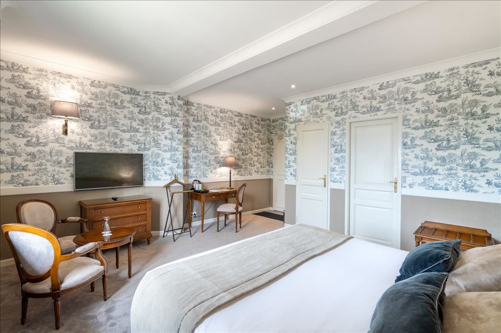 Let yourself be seduced by the beauty Comfort Room, decorated in a Directoire or Louis XVI style with a breathtaking view of the estuary, equipped with a work area with a desk, and a sitting area.